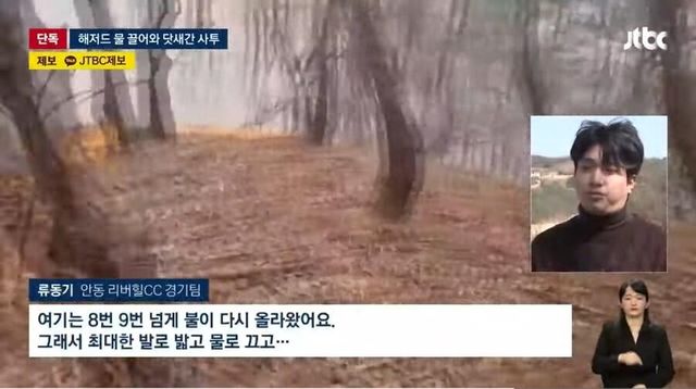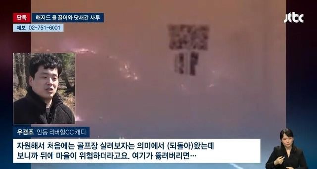항공 사진을 보면 산불이 넘지못한곳은 멀쩡하고 반대쪽은 잿더미가 됐음