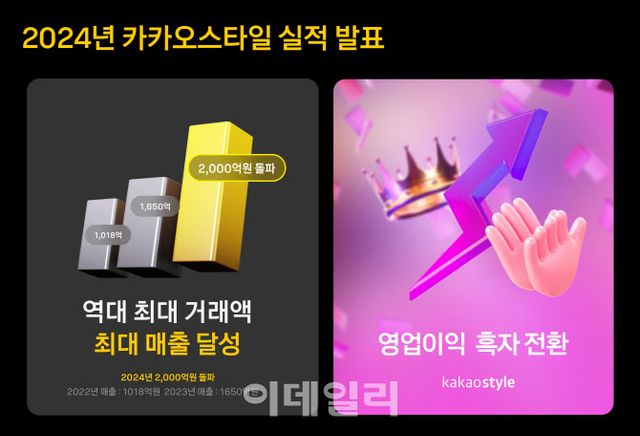 카카오스타일의 매출은 2022년 처음으로 1000억원을 달성한 이후로 2023년 1650억원을 기록하는 등 매년 성장을 이어왔다.