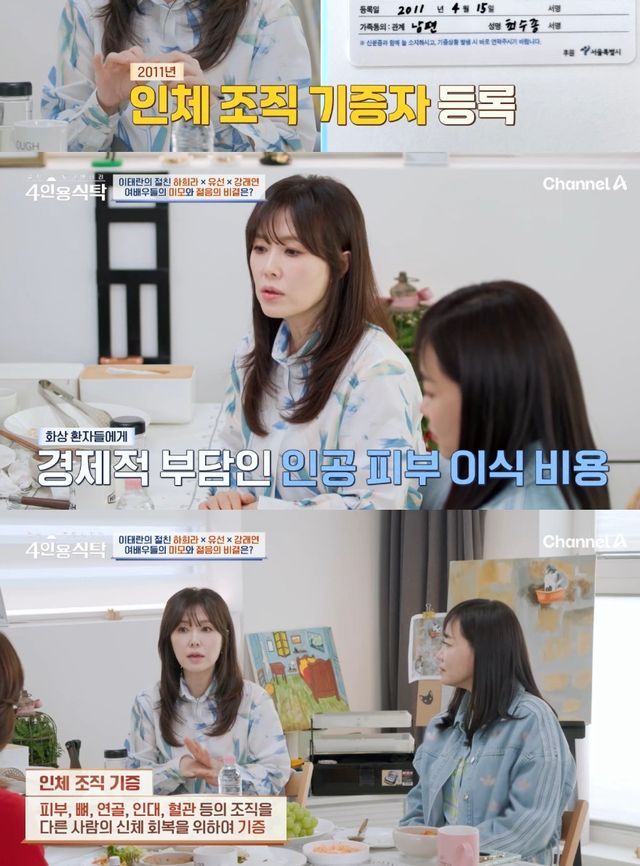 이어 하희라는 "내가 몸 관리를 잘하려는 이유 중 하나가 인체 조직 기증을 꽤 오래 전에 했다. 장기 기증은 사람들이 많이 아는데 인체 조직은 잘 모른다"고 운을 뗐다.