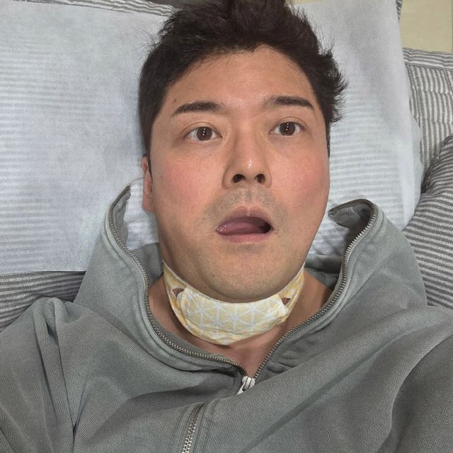 공개된 사진 속 전현무는 침대에 누운 채 셀카를 찍고 있는 모습이다. 전현무는 회복을 위해 목에 밴드를 붙인 채 휴식을 취하고 있다.