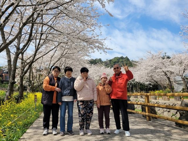 사회복지법인 브니엘이 운영하는 서귀포시사랑원 류영수 원장과 생활인들이 1일, 서홍동 웃물교로 벚꽃 나들이를 다녀왔다.