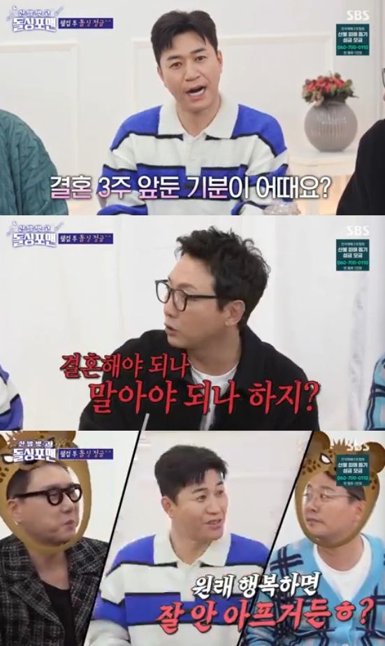 김종민은 "요즘 청첩장 돌리느라 정신이 없다"고 했고, 이에 탁재훈은 "결혼을 해야하나 말아야하나, 이런 마음 아니냐. 내가 다 안다. 인간이면 다 그렇다. 예비 신부도 같은 생각일거야. 서로 말을 못할 뿐"이라고 놀렸다.