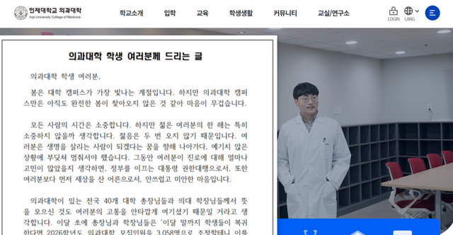 [한국대학신문 임지연 기자] 39개대 의대생들이 전원 복귀해 의대교육이 1년여 만에 정상화될 수 있을지 주목받고 있는 가운데, 인제대 의대생 74.6%가 등록을 거부한 것으로 파악됐다.