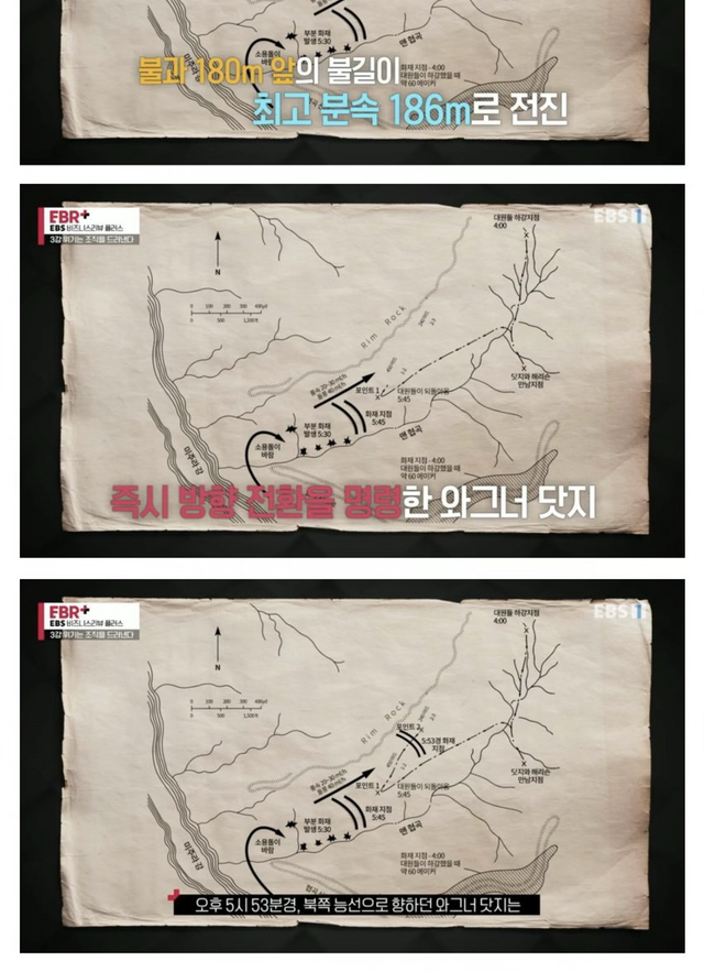 이윽고 180m앞에 있던 불길이 1분만에 도달