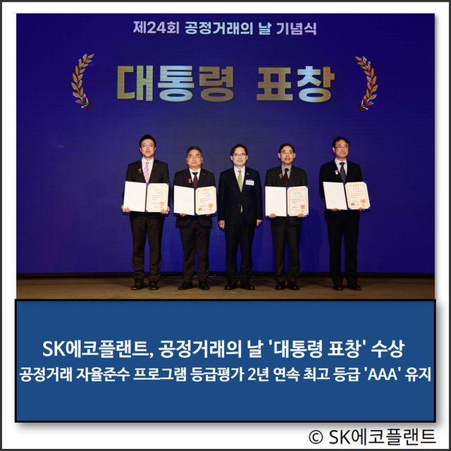 SK에코플랜트는 최근 공정거래위원회 주관 CP 등급평가에서 최고 등급인 'AAA'를 대기업 최초로 2년 연속 획득하는 성과를 달성하기도 했다. 아울러 우수한 CP 운영 역량을 기반으로 CP 문화 확산에 기여하고 있다. CP 등급평가는 공정거래 관련 법규 준수를 위해 기업 자체적으로 제정·운영하는 내부 준법시스템을 공정거래위원회가 평가한 후 등급을 부여하는 제도다.