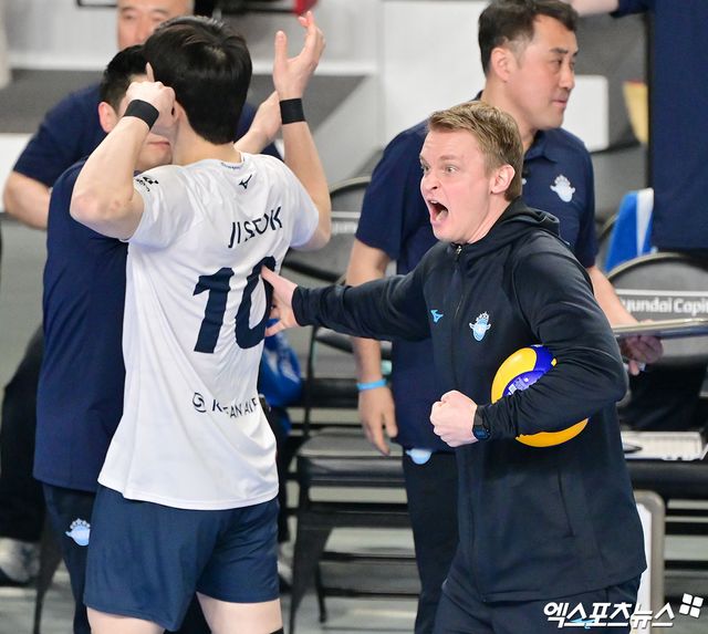 토미 감독은 "경기를 리드하다가 역전당해서 지면 기분이 나쁘지만 그래도 긍정적인 부분이 있다면 현대캐피탈을 끝까지 밀어붙였다"며 "팀 분위기도 좋다. 챔피언 결정전다운 경기였다. 포기하지 않고 다음 2차전을 잘 준비하겠다"고 강조했다.