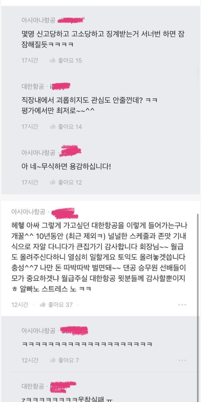 블라인드에서 싸움난 대한항공, 아시아나 직원들