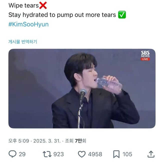 눈물 닦기 ❌수분 보충해서 눈물 더 흘리기✅