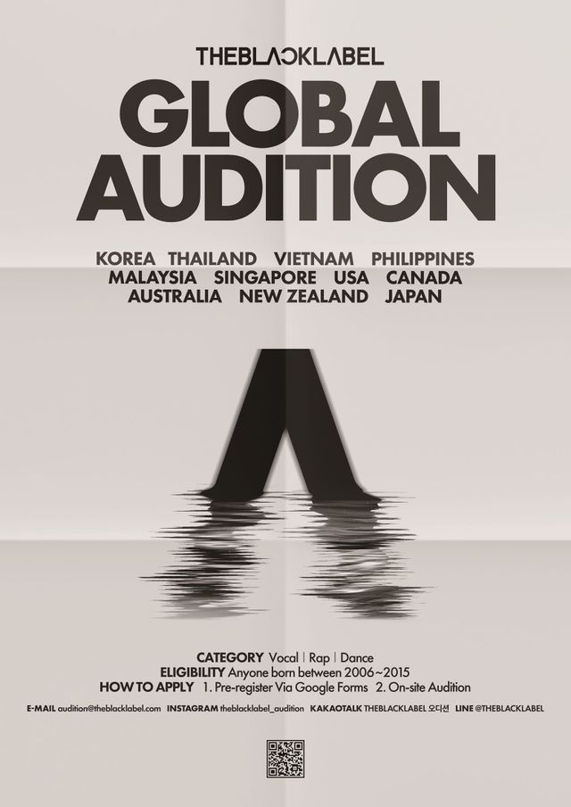이번 오디션은 이날부터 접수를 시작했으며, 국적 상관없이 2006년부터 2015년 출생자를 대상으로 한다. 더블랙레이블은 오는 4월 19일 서울을 시작으로 태국(방콕), 베트남(호치민), 필리핀(마닐라), 말레이시아(쿠알라룸푸르), 싱가포르, 미국(엘에이, 오렌지카운티), 캐나다(토론토, 밴쿠버), 호주(시드니, 멜버른), 뉴질랜드(오클랜드), 일본(도쿄) 등 총 11개국 14개 도시를 방문해 인재를 발굴할 예정이다. 글로벌 오디션 최종 합격자는 더블랙레이블의 연습생으로 트레이닝 과정을 시작하게 된다.