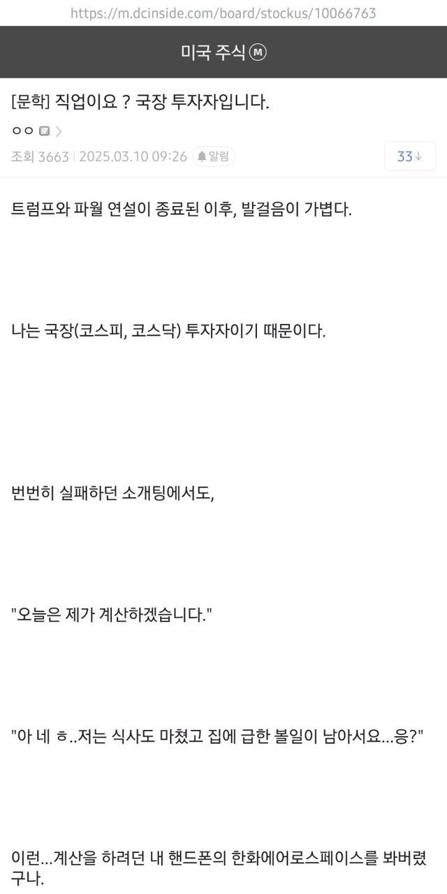 급격한 하락에 미쳐버린 미주갤 문학