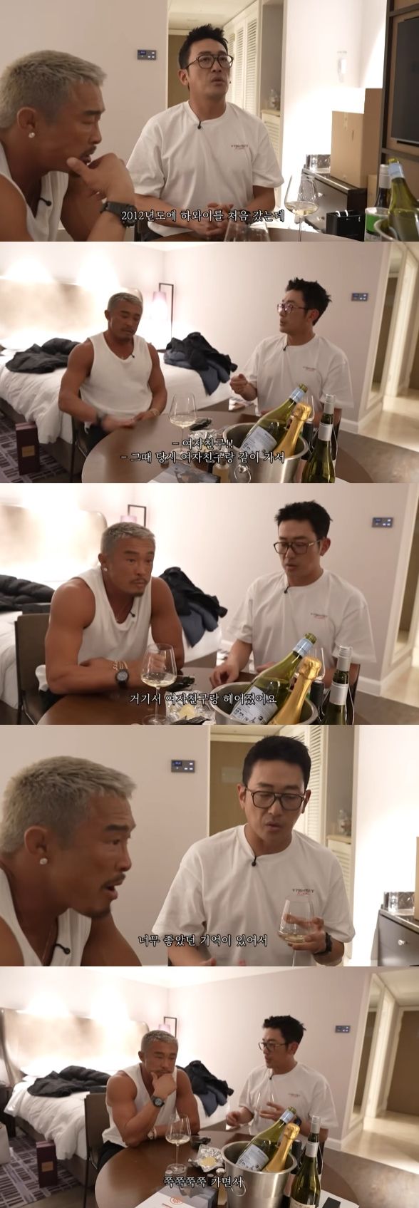 추성훈과 하정우는 호텔 방으로 함께 들어가 술을 한 잔 마시며 진솔한 대화를 나눴다.