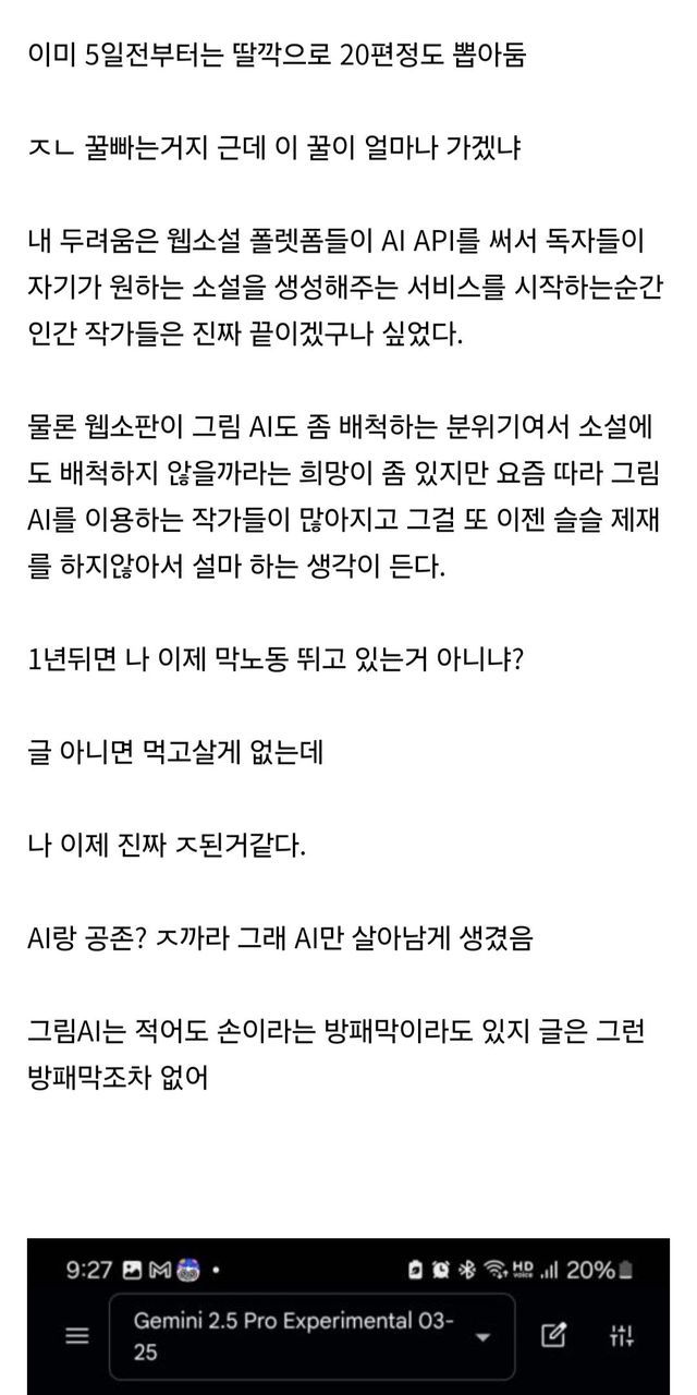 웹소 작가인데 AI 좀 이제 많이 무서움