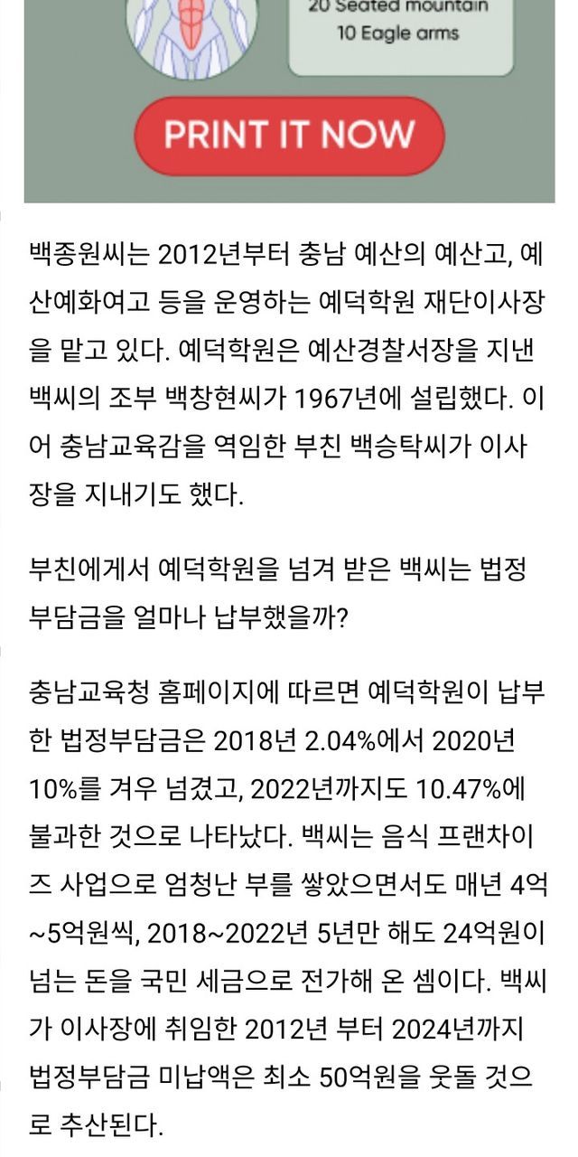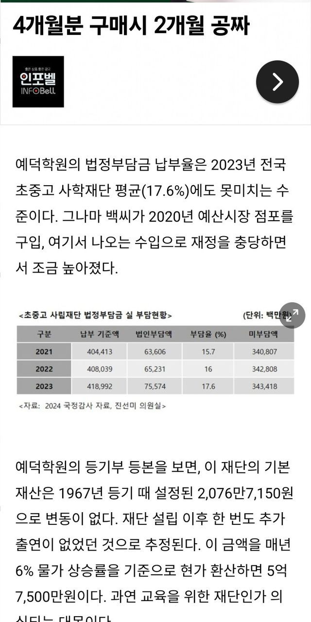 즉 그동안 예덕학원을 공짜로 굴리고 있었다는 뜻임 그것도 세금으로