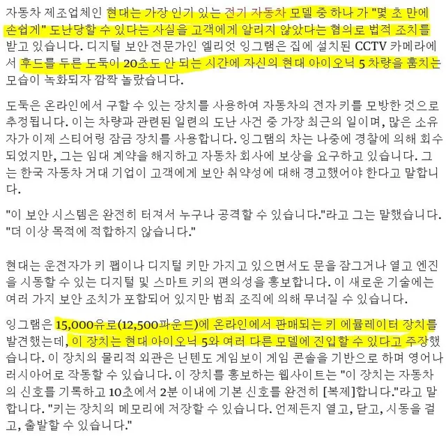 현대 기아 전기차를 케이크를 먹듯 쉽게 훔치는 방법이 개발됨
