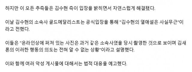 ' 소속사 골드메달리스트는 공식입장을 통해 "김수현의 열애설은 사실무근" '