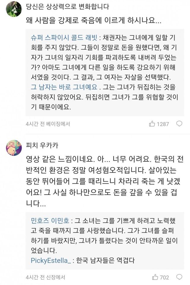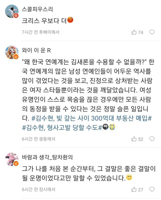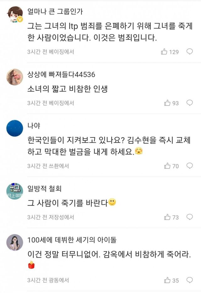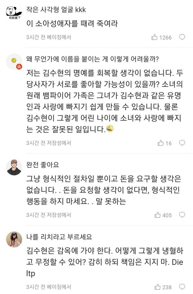 김수현에 대한 중화국 웨이보 반응들