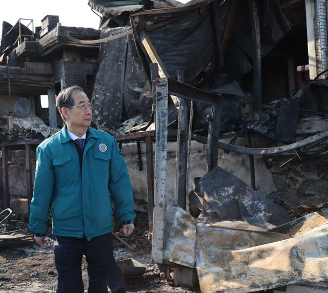 한 대행은 2일 경북 영덕구 노물리 산불 피해 현장을 방문했다. 그는 “마을 곳곳이 불길에 휩쓸려 삶의 터전이 무너진 모습을 보며, 주민분들이 얼마나 큰 충격과 상실감을 느끼셨을지 감히 헤아리기 조차 어렵다”며 “정부와 지자체가 피해 수습과 복구를 최우선 과제로 삼고 현장에서 필요한 지원이 신속하게 이뤄질 수 있도록 마지막까지 최선을 다해달라”고 관계기관에 당부했다. 그러면서 이재민에 대한 장기 주거 지원과 전기·통신 복구, 산불 피해 농어가 생계 대책 마련 등을 지시했다.