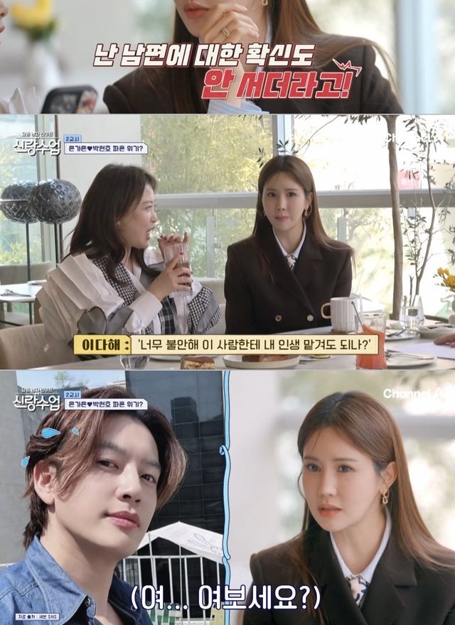 이를 들은 이다해는 "난 남편에 대한 확신도 안 서더라"고 폭탄 발언을 했다. 그는 "적당히 해"라는 심진화의 말에도 "너무 불안하고 이 사람에게 내 인생 맡겨도 되나, 큰일난 거 같은데 하는 생각을 했다"고 폭주했다.