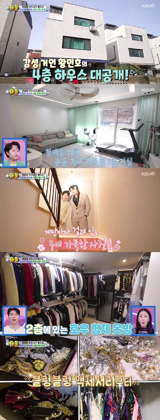 2층은 호우 형제의 옷방으로 꾸며졌으며, 악세사리부터 화려한 의상까지 다양한 패션 아이템이 가득했다. 3층은 트로트 형제의 방으로, 그동안 쌓아온 각종 트로피들이 진열돼 있어 이들의 성과를 한눈에 볼 수 있었다.