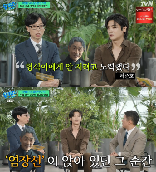 이날 유재석은 “허준호가 ‘촬영 때 박형식에게 안 지려고 노력했다’고 하더라. 이건 허준호가 인정한다는 거 아니냐. 이만한 칭찬이 어디 있냐”고 언급했다.