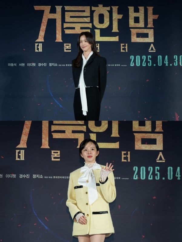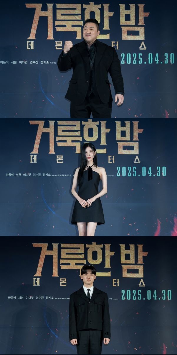 올봄 스크린을 찢을 강렬한 오컬트 액션 영화 '거룩한 밤: 데몬 헌터스'가 수많은 취재진의 스포트라이트 속에서 제작보고회를 진행했다. '거룩한 밤: 데몬 헌터스' 는 악을 숭배하는 집단에 의해 혼란에 빠진 도시, 특별한 능력을 가진 어둠의 해결사 ‘거룩한 밤’ 팀 바우(마동석), 샤론(서현), 김군(이다윗)이 악의 무리를 처단하는 오컬트 액션. 제작보고회 현장에는 영화의 주역 마동석, 서현, 이다윗, 경수진, 정지소가 참석해 꽉 찬 존재감을 보여줬다. 등장부터 강렬하고 화기애애한 에너지를 뿜어낸 이들은 이어진 토크에서 영화에 대한 애정 넘치는 이야기들을 쏟아냈다.