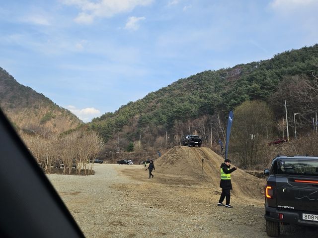 본격 오프로드 주행에 앞서 워밍업을 위해 택시 드라이빙 형태로 해발 840m 박달고치 전망대에 올랐다. 최근까지 눈이 내리고 녹은 터라 진창이 된 산길이었지만 주행 동안 단 한 번의 미끄러짐 없이 안정적이었다.