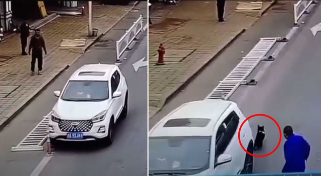 이를 발견한 행인이 차로 달려가 운전석 문을 열자 놀랍게도 운전석에는 사람이 아닌 ‘개’가 있었다. 놀란 강아지는 차 안에서 뛰쳐나와 달아났다.