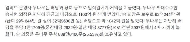 작년에만 보수로 62억,배당으로 1042억 받음