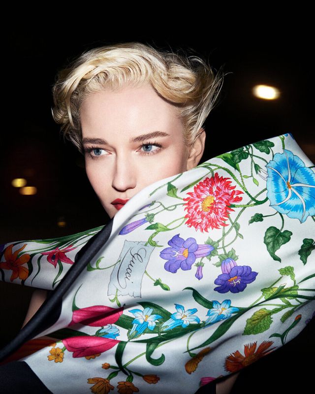 캠페인 속 구찌 실크 스카프는 단순한 액세서리를 넘어, 자아를 표현하는 매개체로서 존재감을 드러내는데요. 그 중심에는 하우스의 상징적인 ‘플로라(Flora)’ 모티프가 자리하고 있죠. 1966년, 이탈리아 일러스트레이터 비토리오 아코르네로 데 테스타(Vittorio Accornero de Testa)가 처음 선보인 플로라 모티프는 각 계절을 대표하는 꽃으로 구성되어 시대를 초월하는 우아함을 상징했습니다. 이번 캠페인에서는 플로럴 패턴의 구찌 스카프를 목에 두르거나 머리에 감싸며 전통적인 디자인을 현대적으로 재해석해 선보였죠.
