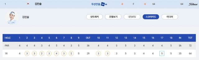 1R : 8언더파 64타(버디 9개, 보기 1개) 1위