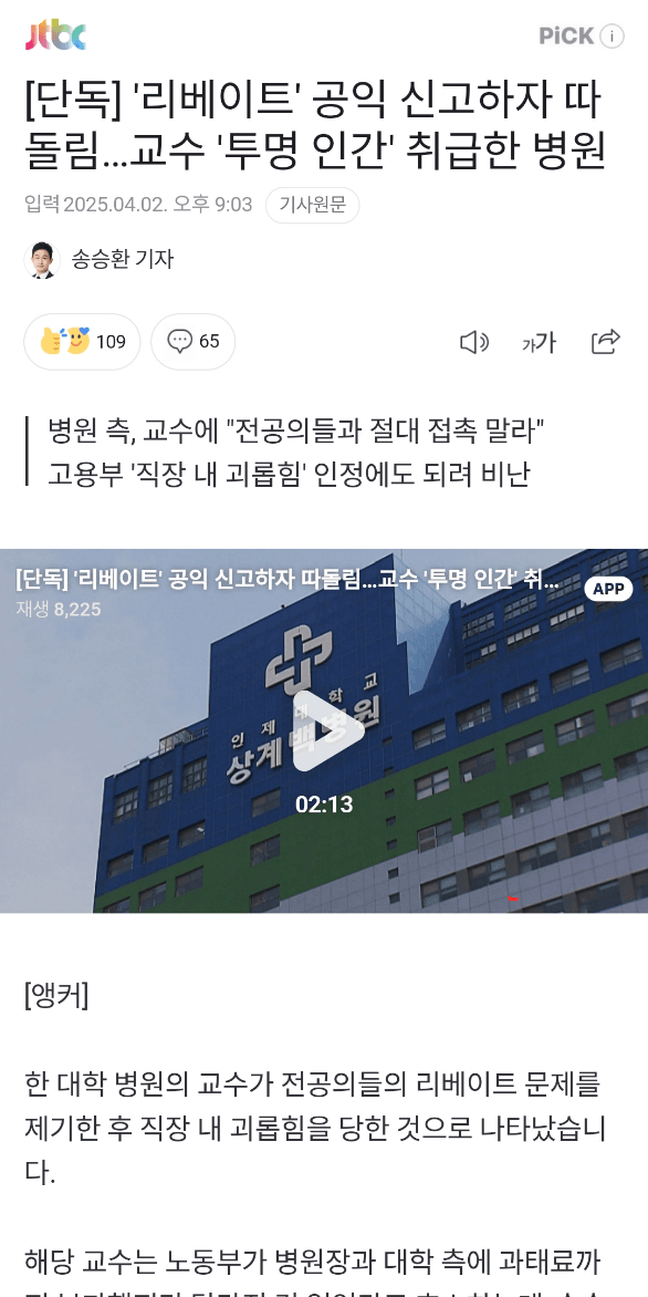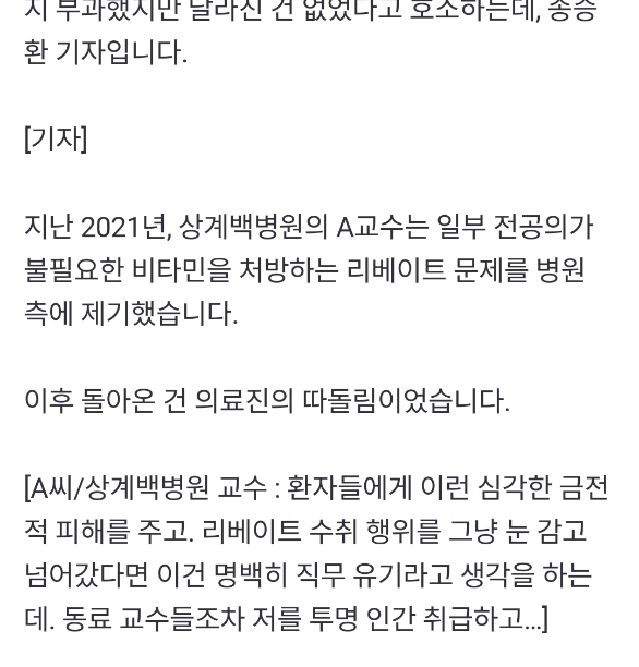 전공의들이 리베이트 받고 불필요한 비타민 처방하는거 신고했더니 병원에서 따돌림...