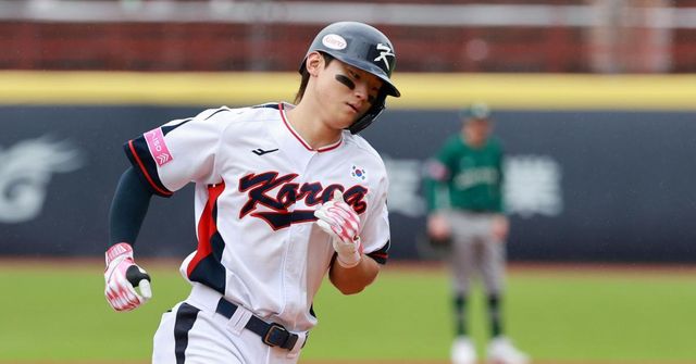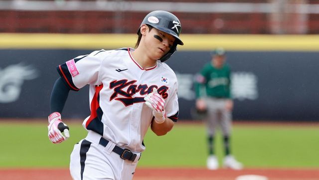 지난해 11월 18일 대만 타이베이 톈무야구장에서 열린 세계야구소프트볼연맹(WBSC) 프리미어12 2024 B조 조별리그 대한민국과 호주의 경기에서 김도영이 투런 홈런을 치고 그라운드를 돌고 있다. / 연합뉴스