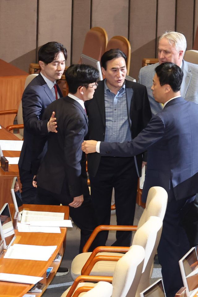 앞서 박 의원은 전날 제3차 본회의에서 ‘헌법재판소 재판관 마은혁 임명 촉구 결의안’을 채택하는 과정에서 발언 중 강유정 의원을 향해 ‘공산주의자’라며 고성을 질렀다.
