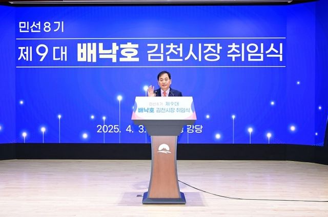김천시청 강당에서 열린 취임식에서 배 시장은 “제1호 공약을 시민 소통으로 정했다. 현장의 목소리를 더 많이 듣고 소통하며 시민과의 약속을 지키고 기대에 부응하겠다.”라며 취임 각오를 밝혔다.