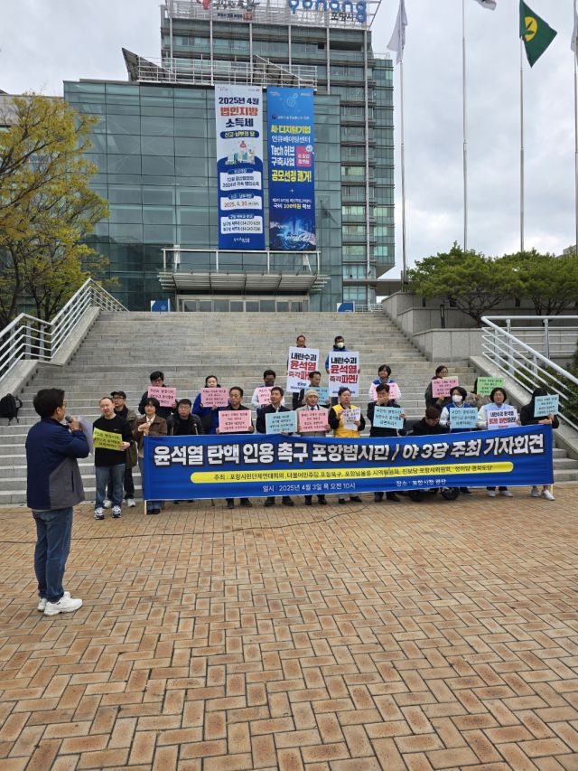 한편 포항시민단체연대회의는 헌법재판소의 대통령 윤석열 탄핵심판 선고일인 4일 11이후 포항시청 앞에서 탄핵심판 선고에 대한 입장을 밝히는 기자회견을 갖는다고 예고했다.