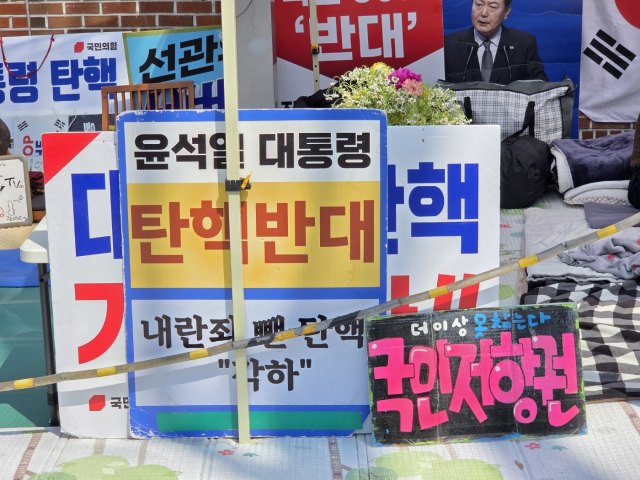 일부 참가자들은 선고가 진행되는 다음날까지 헌재 인근에서 버티겠다며 인도에 텐트를 친 가운데, 국민의힘 소속 정치인들도 텐트를 치고 철야농성을 예고했다. 윤 대통령 탄핵에 반대하는 국민의힘 당협위원장 89명은 이날 집회 인근에서 기자회견을 열고 "탄핵 반대 당협위원장 전원이 농성장 텐트엥서 밤을 새우며 내일 있을 결정 선고를 기다릴 것"이라고 했다. 농성장에는 윤상현·김미애·이철규·김승수 등 국민의힘 소속 의원들도 자리를 잡았다.