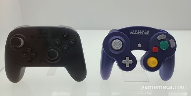 ▲ 닌텐도 게임큐브 컨트롤러와 스위치 2 프로 컨트롤러 (사진: 게임메카 촬영)