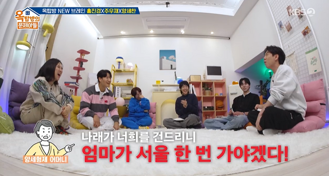 이에 양세찬은 “우리 엄마가 화가 잔뜩 났다. ‘왜 자꾸 나래 씨가 너희를 건드리니, 엄마가 서울 한번 가야겠다’고 한다”고 말해 박장대소를 안겼다. 실제로 모친이 박나래와 통화하며 “나 건달이에요”라고 경고한 일화를 덧붙이기도 했다.