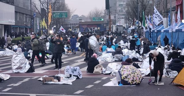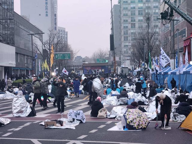 다만 이날 경찰 통제구역 밖인 안국역 일대에는 밤샘 시위를 마친 시민들이 남아 있었다. 이들은 은박 담요나 패딩을 몸에 두른 채 따듯한 차나 어묵 국물 등을 마시며 본 집회를 준비하고 있다.