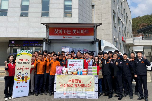롯데마트 임직원들은 지난 3일 경상남도 하동소방서를 방문해 상품을 선물했다. 4일에는 경상북도 의성소방서를 방문해 감사 인사와 함께 물품을 전달할 예정이다.