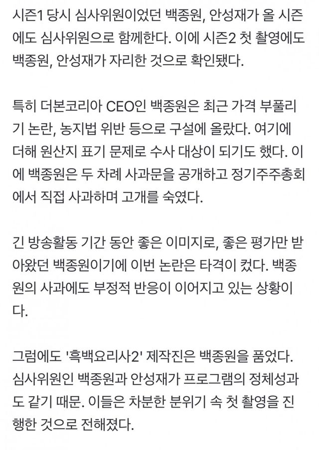 심사위원 백종원 안성재 그대로