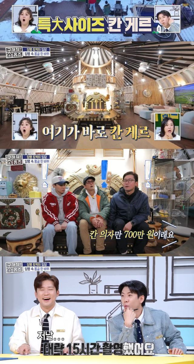 칸 의자만 해도 '700만 원', 칸 게르 주문 제작 비용만 '2천만 원'인 어마한 비용에 양세형은 "일반 게르의 10배 이상이다"며 혀를 내둘렀다.
