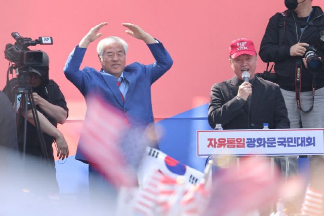 또 “헌재가 왜 전원일치로 파면하느냐. 이 사람들은 법조인이고 역사를 모른다. 대한민국은 이승만이 건국했고 박정희가 일으켰다”며 “법조인들은 맹꽁이들이다. 오늘 헌재 재판관들은 역사적인 탄핵을 받을 것”이라고 목소리를 높였다.