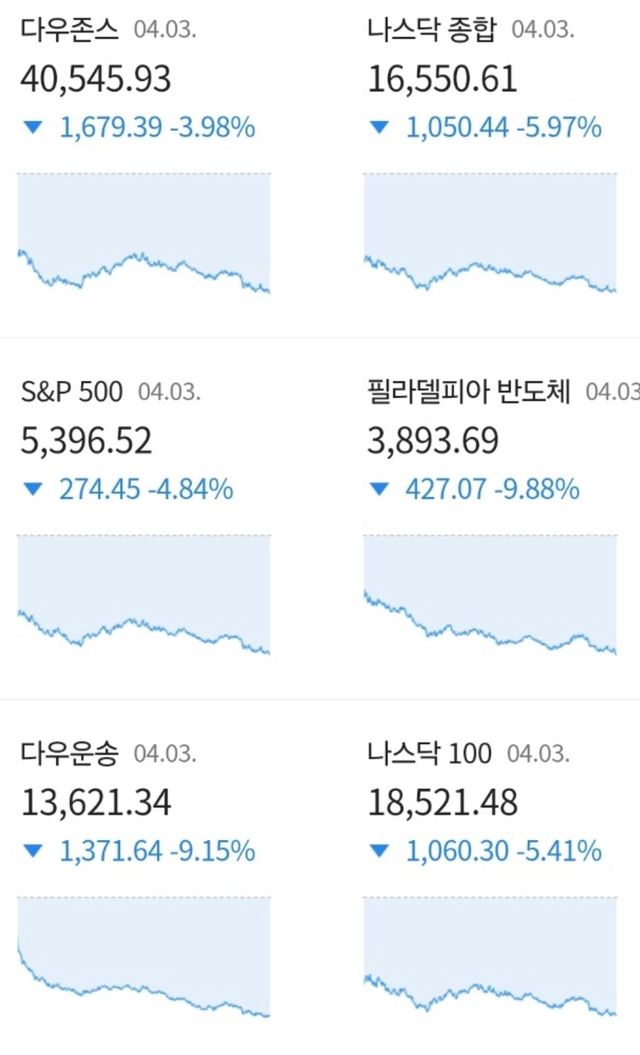 상호관세 발표 후, 나스닥 등등 미국 주식시장 그그그그급락에 대해 언급하며.. (속쓸은 마삼십퍼 ㄷㄷ)