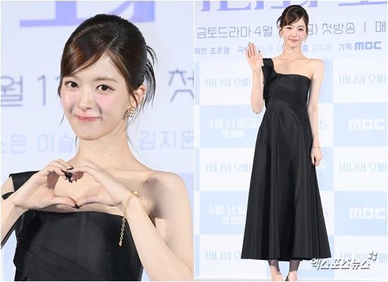 여기에 전체적으로 허리 라인을 잡아줘 청순하면서도 여리여리한 분위기를 극대화했다. 또 깔끔하게 올려 묶은 헤어스타일로 긴 목선과 어깨 라인을 강조, 여성스러움을 배가시켰다.