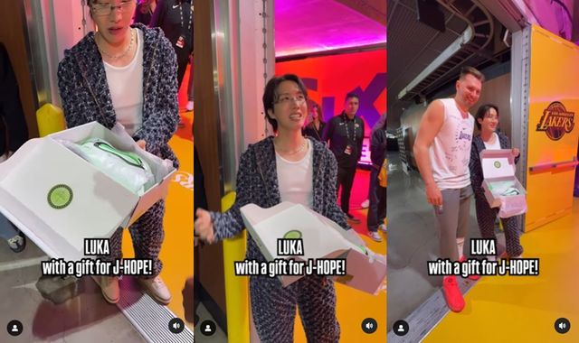 이날 제이홉은 본인이 태어난 해를 지칭하는 등번호 94번의 레이커스 유니폼을 들고서 인증샷을 찍는가 하면, 루카 돈치치로부터 직접 농구화를 선물받기도 했다.