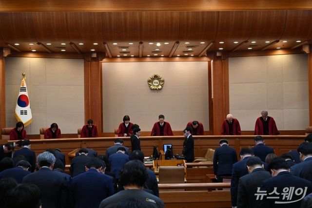 4일 서울 종로구 헌법재판소 대심판정에서 윤석열 대통령 탄핵심판 선고 기일이 진행되고 있다. 사진=사진공동취재단