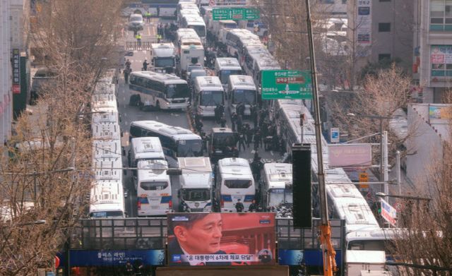 경찰은 2017년 박 전 대통령 파면 당시에도 발령됐던 최고 단계 비상 체제인 ‘갑호비상’과 더불어 전국에 기동대 228개 부대 2만여명을 배치하고 지난 2일 헌재 반경 150m를 차벽으로 둘러싼 바 있다. 이 같은 ‘진공 상태’를 위해 경찰버스 등 200여대가 투입되기도 했다.