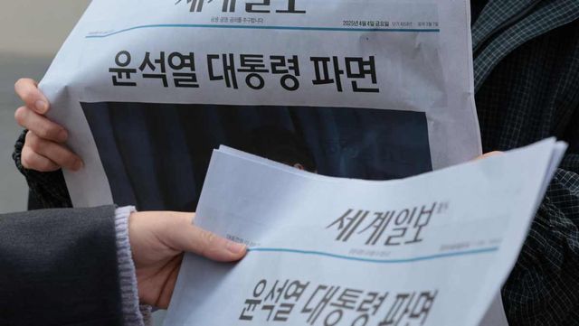 '윤석열 파면' 호외 신문 보는 시민들 / 연합뉴스