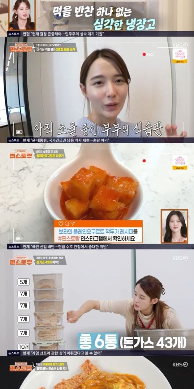 4일 방송한 KBS 2TV ‘신상출시 편스토랑'에서는 13남매 장녀이자 예비신부 남보라가 신혼집에서 첫 요리에 도전한다.